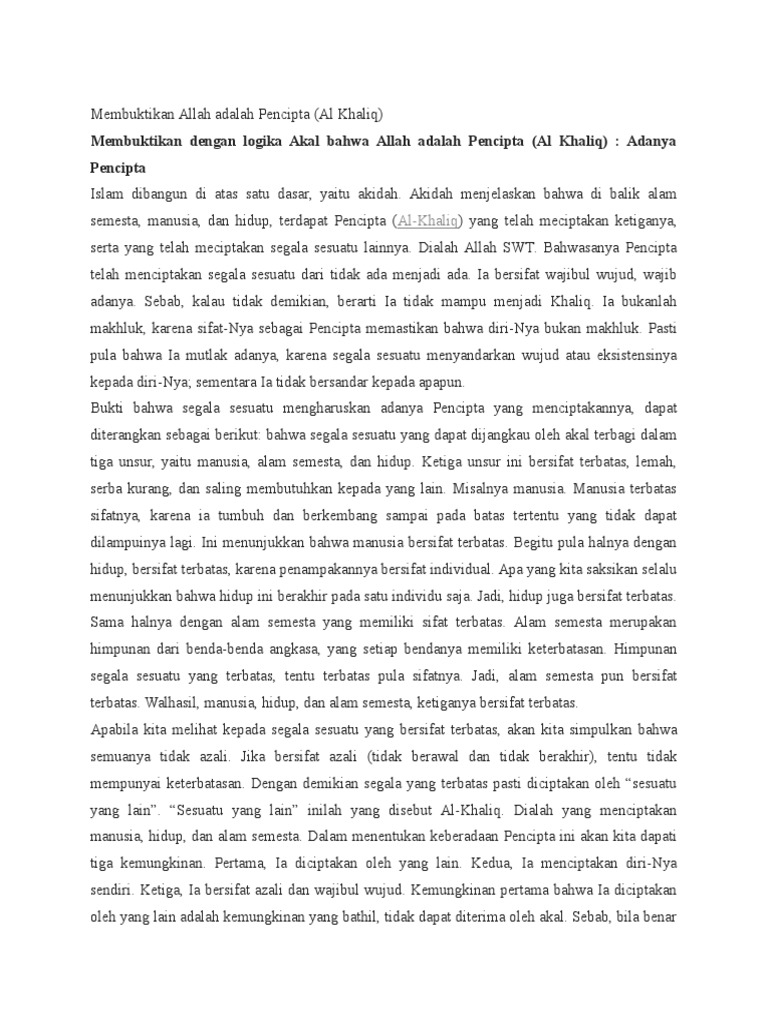 Bukti Bahwa Allah Swt Maha Pencipta Pdf